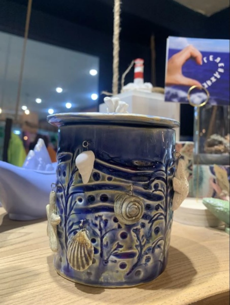 Керамическая чашка с висящими Ракушками Эко декор
