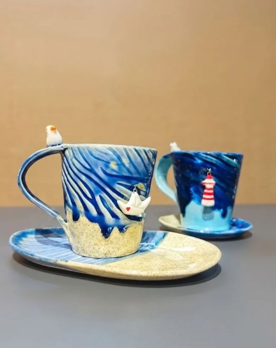 Керамическая кофейная чашка с блюдцем Эко декор