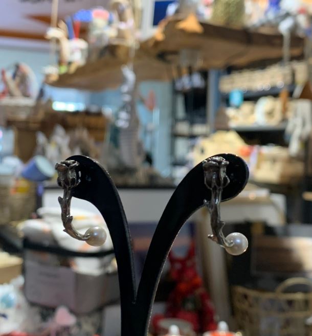 Выполнены из мельхиора, вставки из натурального речного жемчуга, застежки-пусеты из серебра