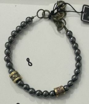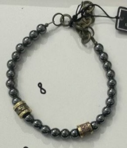 Выполнен из бусин гематита и ювелирной бронзы